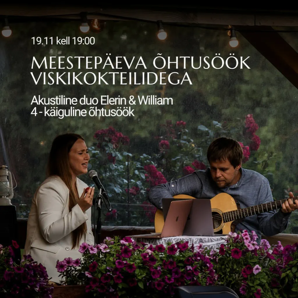 Elerin & William on akustiline duo, kelle muusikas põimuvad naiselik vokaal ja kitarri soe ja ehe kõla. Tartust pärit muusikud loovad õhtu, kus pop, soul ja pehmed ballaadid kohtuvad maitseelamuste, hea kokteili ja mõnusa seltskonnaga.